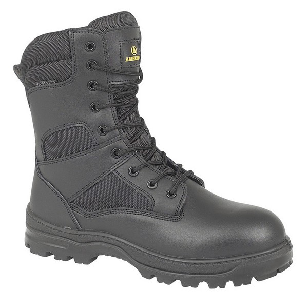 The Amblers Waterproof Combat Boot is a high-leg combat style boot, fully waterproof and breathable, made from leather and a hardwearing mesh upper with added comfort from the padded lining. It is ideal for police, security and military personnel. It is available in size 4 – 14, therefore being suitable for both men and women.